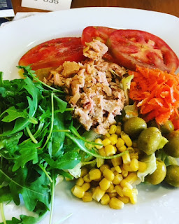 Dinners were usually leftovers for me. Jay would eat a burger or something easy. The first night we were there we shared paella. In europe they serve a massive amount of it so I had leftovers for pretty much the whole time we were there. The other times I would eat an appetizer as a meal and splurge on wine.